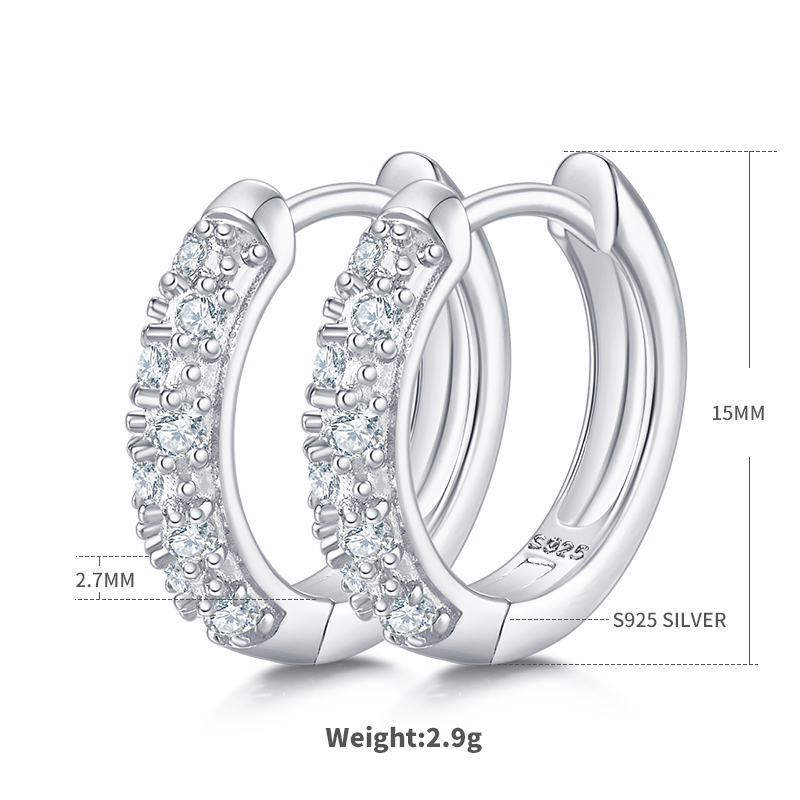 Double Row Half Earrings S925 Silver Moissan Diamond Ct Grade D 0.27CT K009A