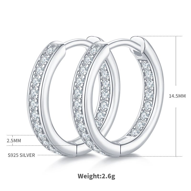 Single row of half earrings S925 Silver Moissan Diamond Grade D 0.32CT K001A
