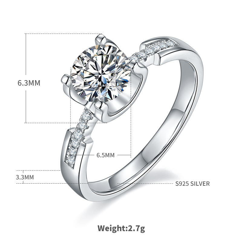 Straight arm micro-set cow head small waist S925 silver plated white gold moissanite diamond women's ring 1 carat D grade