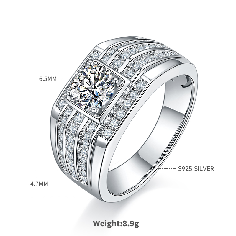 Home / Rings / M78A S925 Silver Plated White Gold Moissan Diamond Men's Ring 1 Carat Grade D