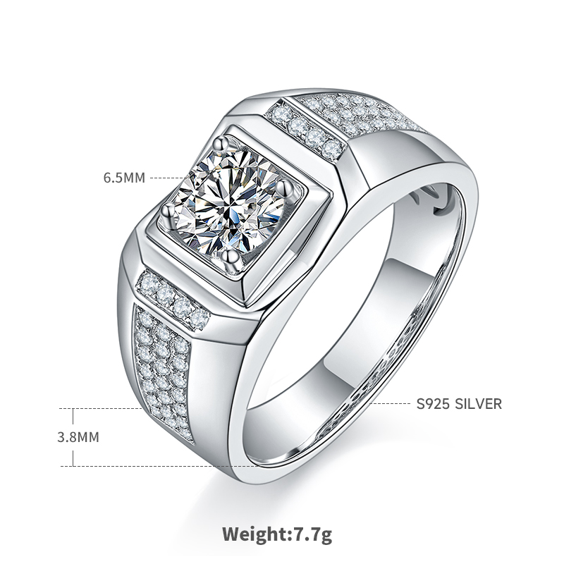 Home / Rings / M80A S925 Silver Plated White Gold Moissan Diamond Men's Ring 1 Carat Grade D