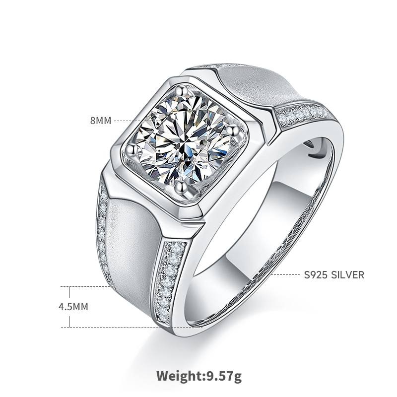 Home / Rings / M81B S925 Silver Plated White Gold Moissan Diamond Men's Ring 2 Carat Grade D