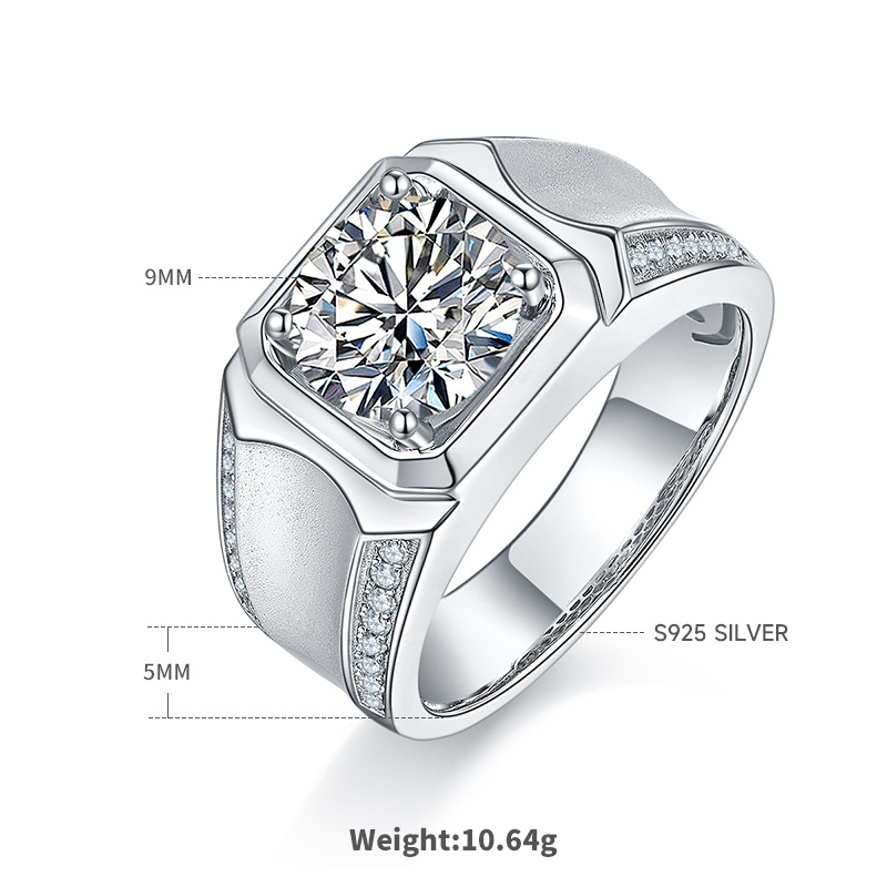 M81C S925 Silver Plated White Gold Moissan Diamond Men's Ring 3 Carat Grade D