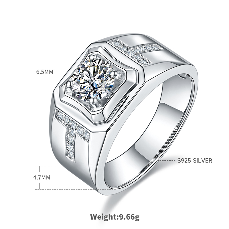 Home / Rings / M85A S925 Silver Plated White Gold Moissan Diamond Men's Ring 1 Carat Grade D