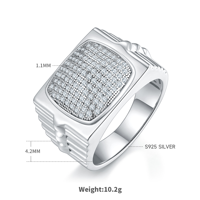 S925 silver plated white gold moissanite men's ring criolite D grade 0.7 carat
