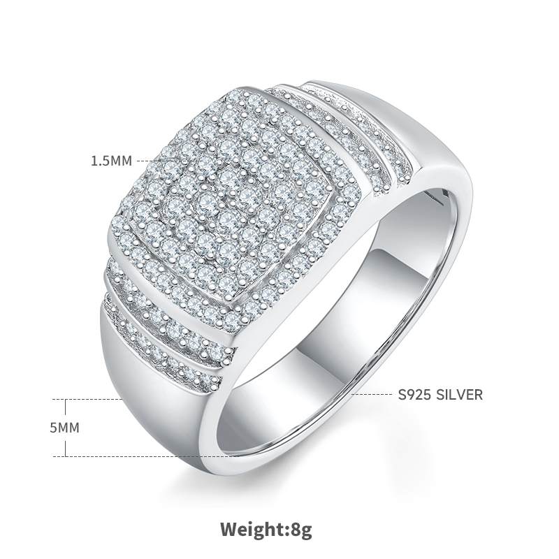 S925 silver plated white gold moissanite men's ring criolite D grade 0.82 carat